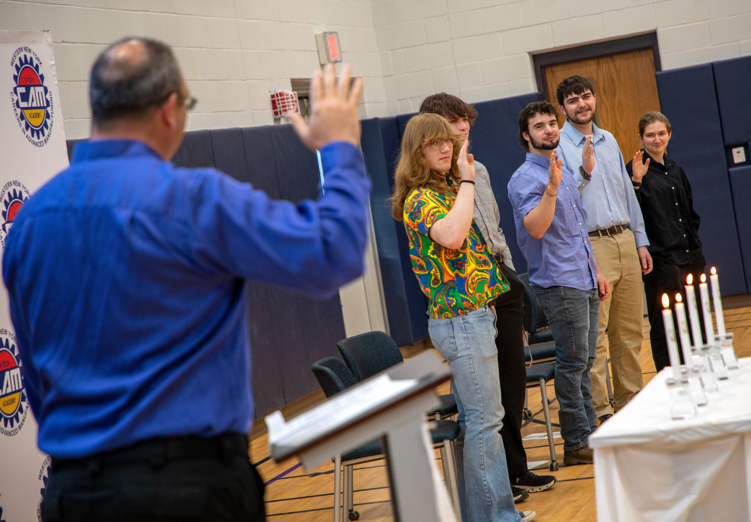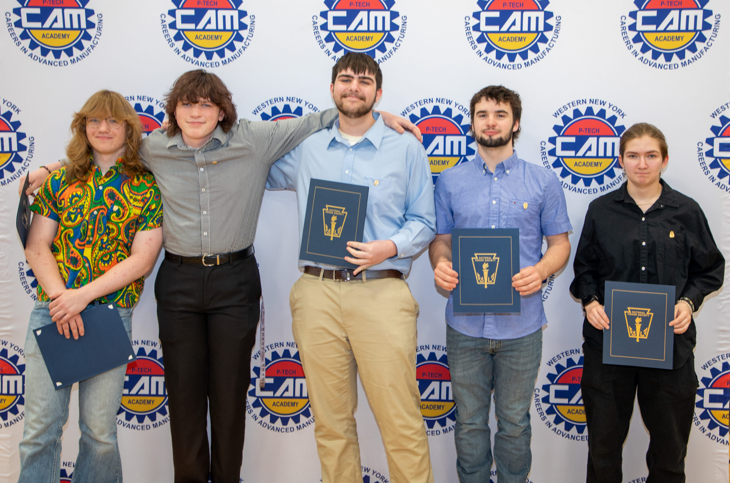 Five students at CAM P-TECH in Springville were inducted into the school’s chapter of the National Honor Society. Family and friends gathered on April 24 for the induction ceremony.