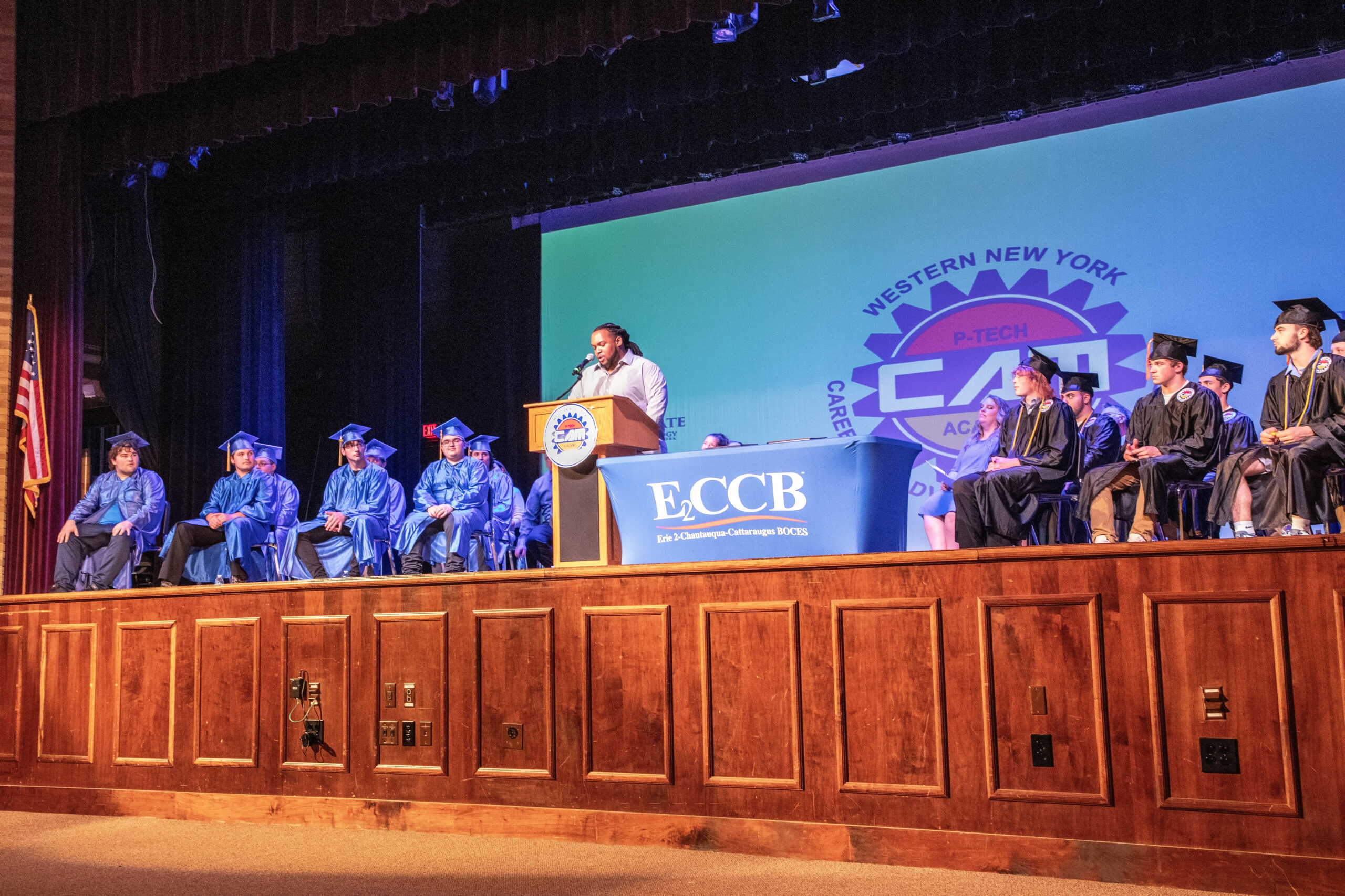 Computer Information Systems instructor Daniel Palumbo said the evening’s celebration marked “not only the end of a journey but the beginning of bold new chapters” for students. He congratulated CAM P-TECH’s first five graduates who received their Computer Information Systems degrees from Alfred.