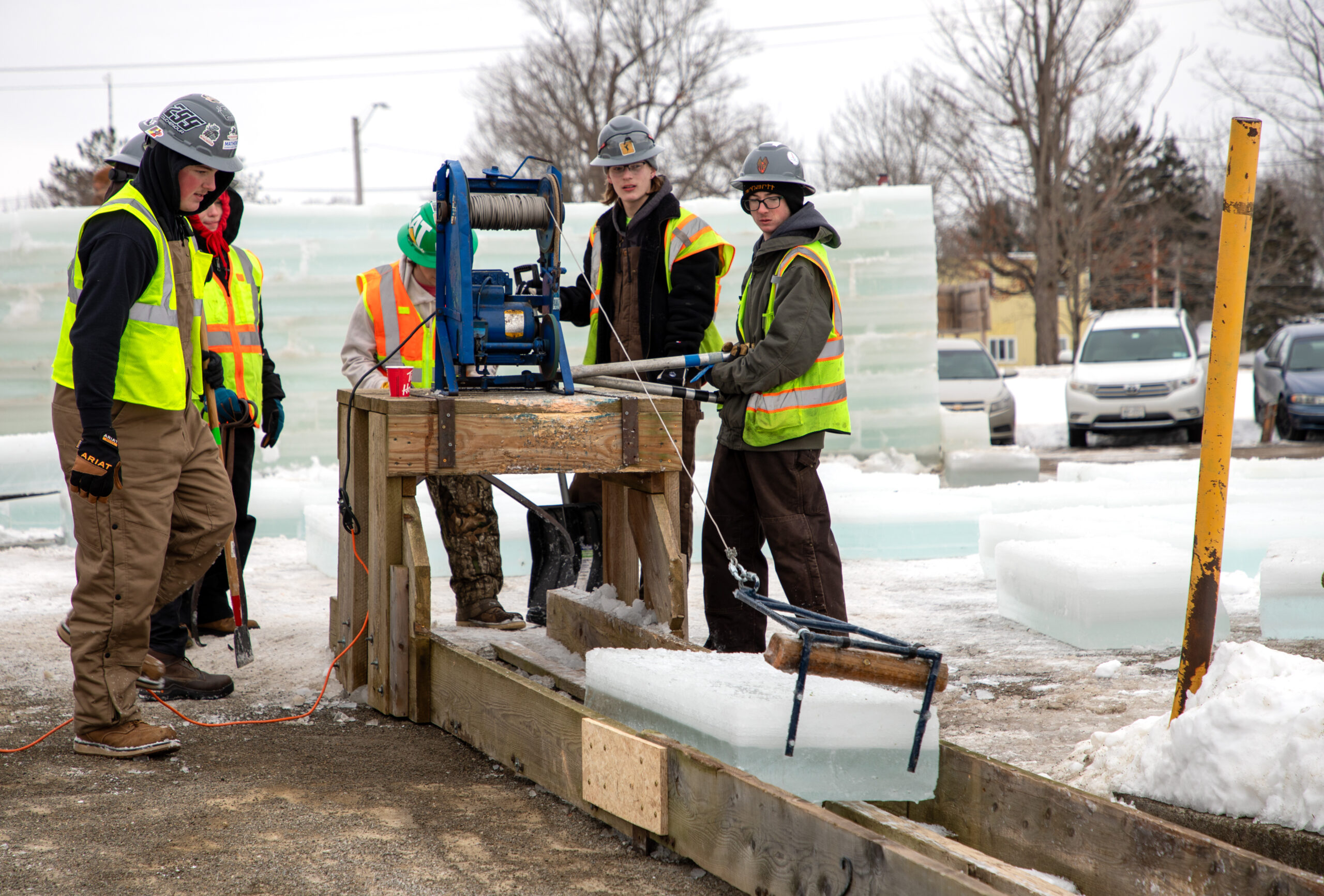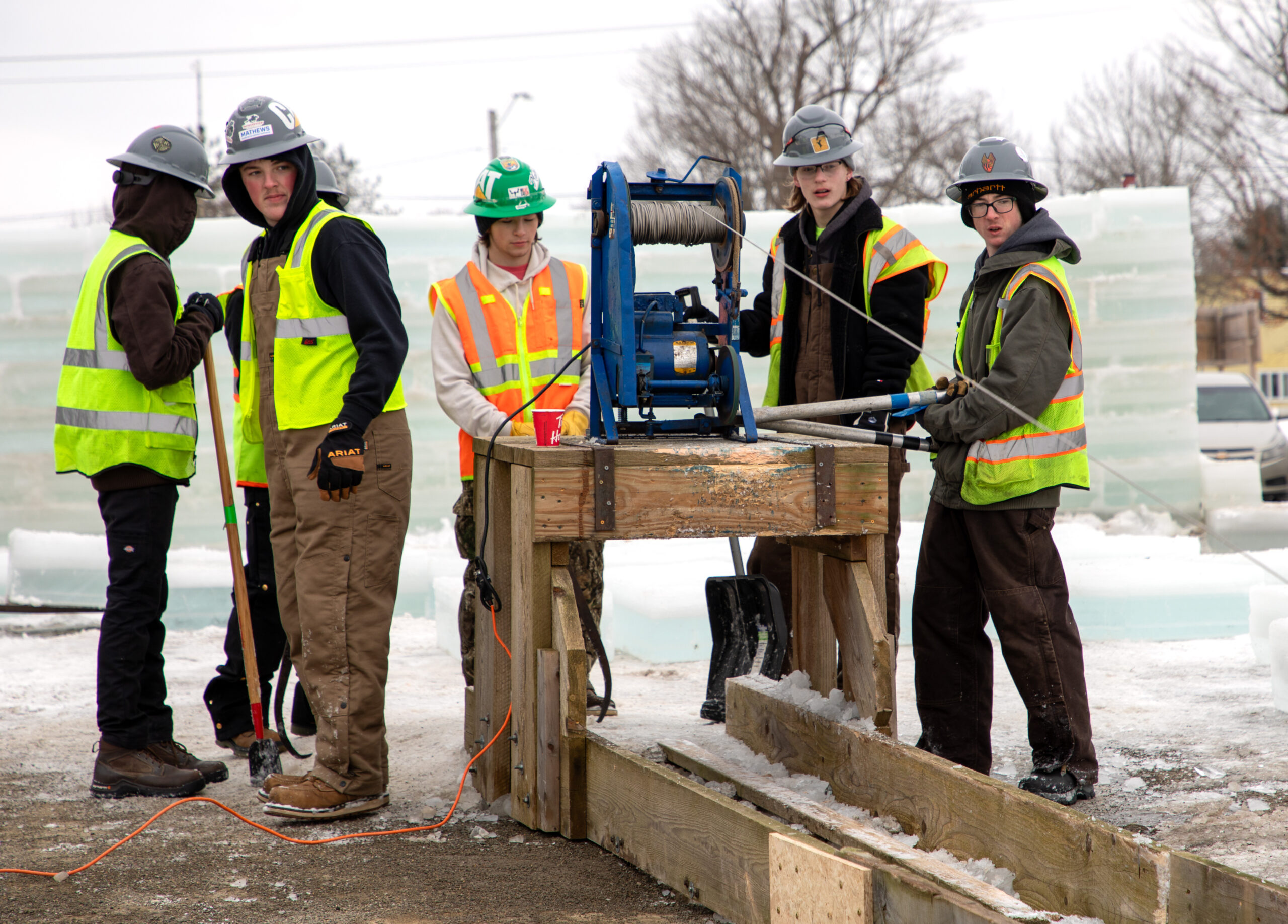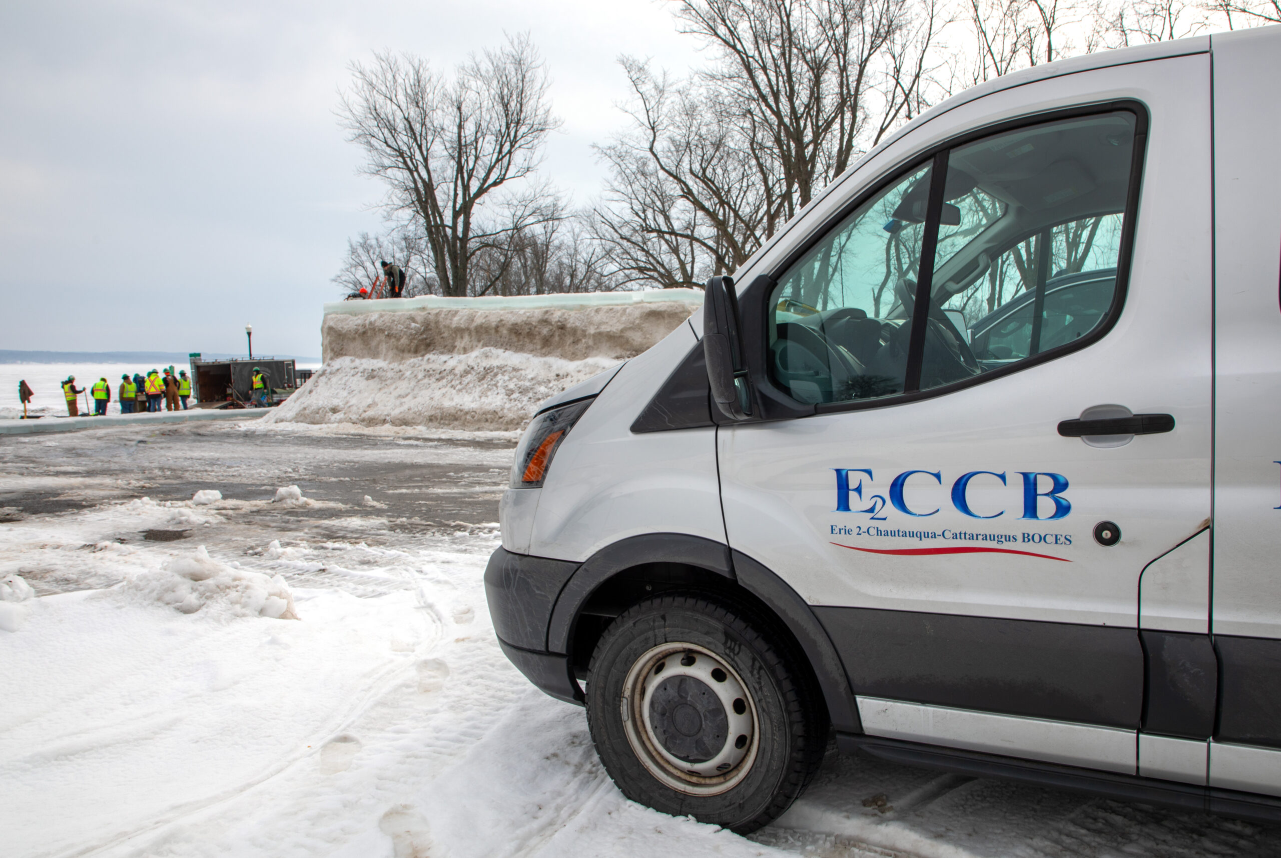 For years, Erie 2-Chautauqua-Cattaraugus BOCES has played an important role in the festival. Career & Technical Education students, aiding scores of community volunteers, organizations, and businesses, assist with getting hundreds of uniform ice blocks out of Chautauqua Lake and into position for the iconic castle.