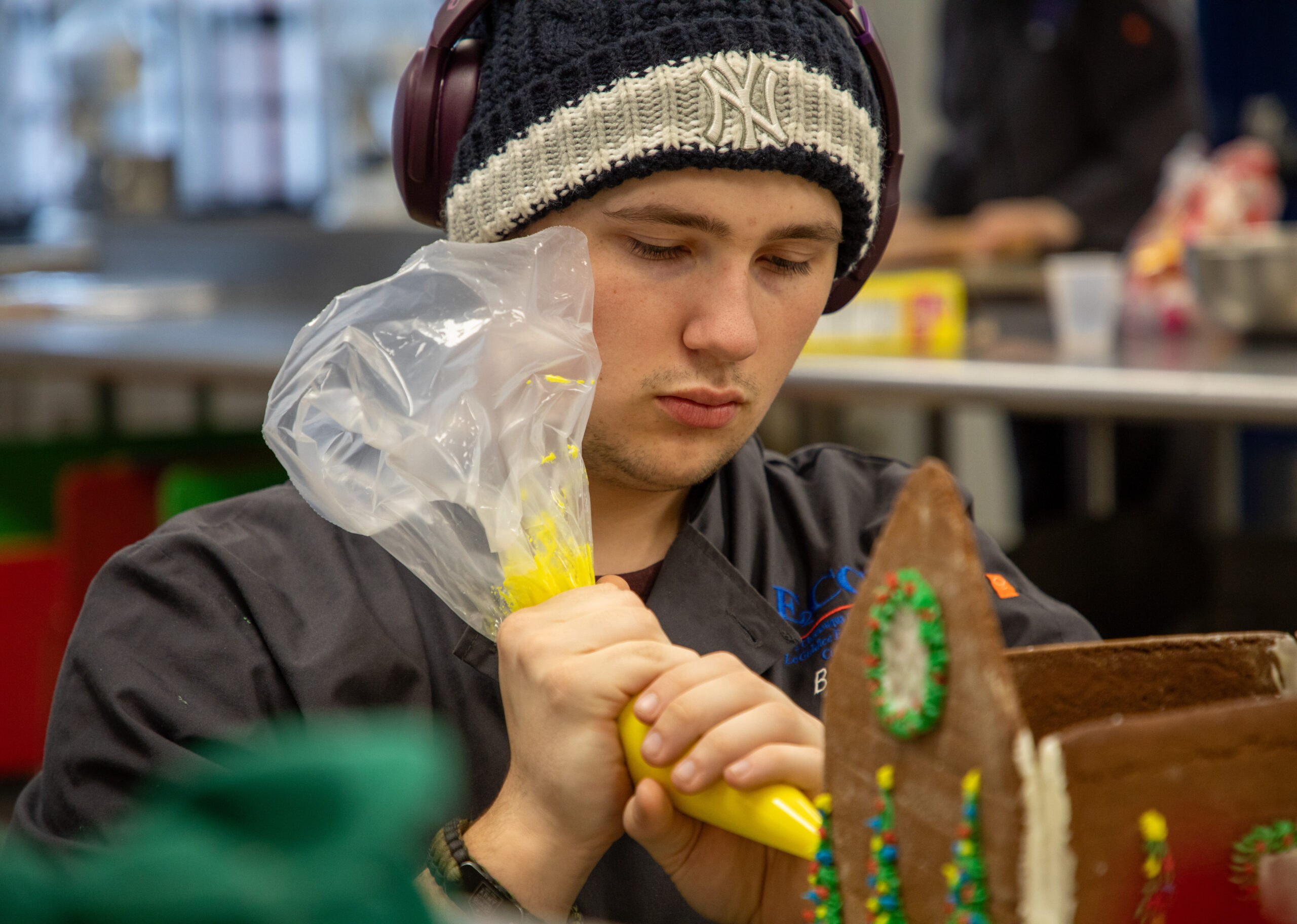 Rosario said the gingerbread house contest, a staple at LoGuidice for almost three decades, was a chance for her to team up with her new friend and get creative. She said she struggled at first with piping the icing, a technique many Culinary Arts students haven’t practiced before.