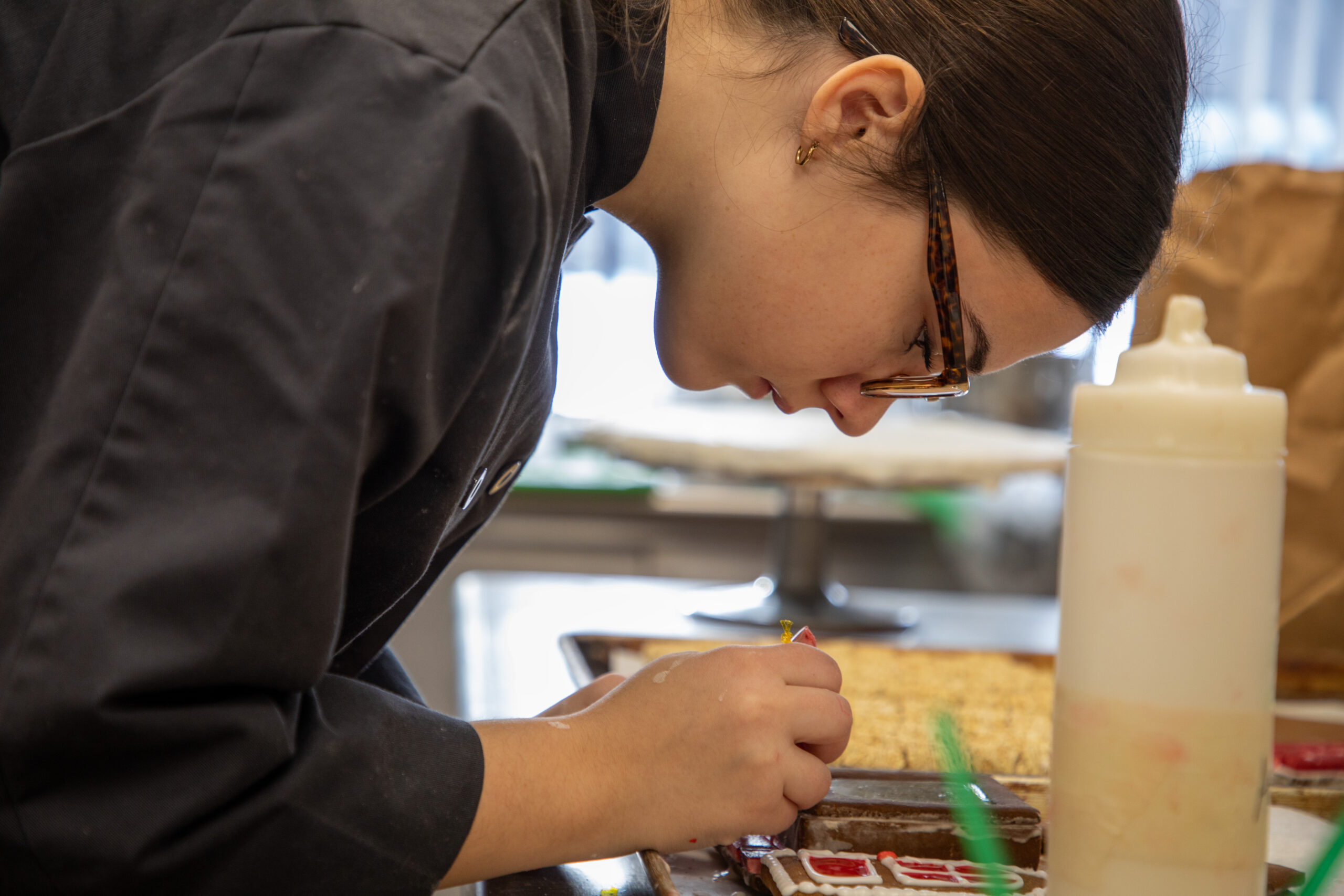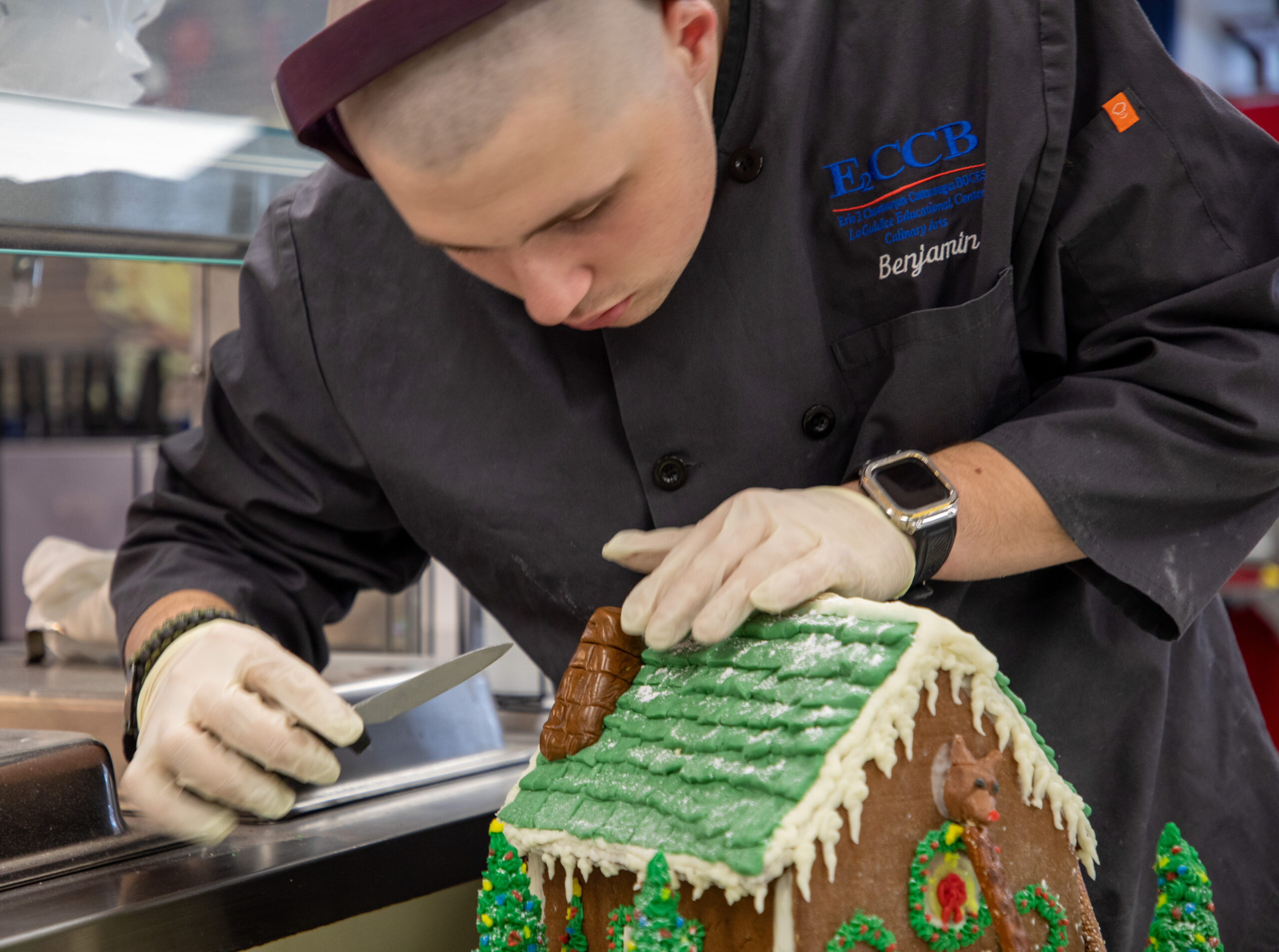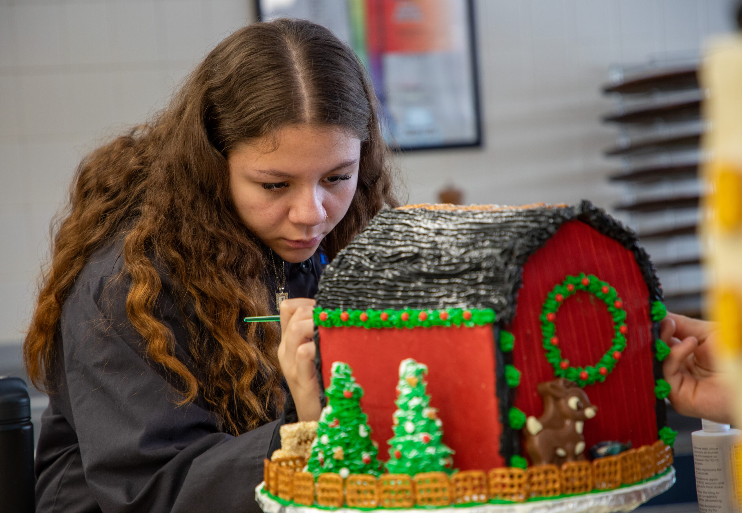 “I love this time of year because I get to see what the students can come up with,” Caccamise said. “Patience is a big thing in this industry. With these gingerbread houses, they have to work together as juniors and do it purposely. It’s not always easy, working with someone, especially someone you don’t know necessarily.”