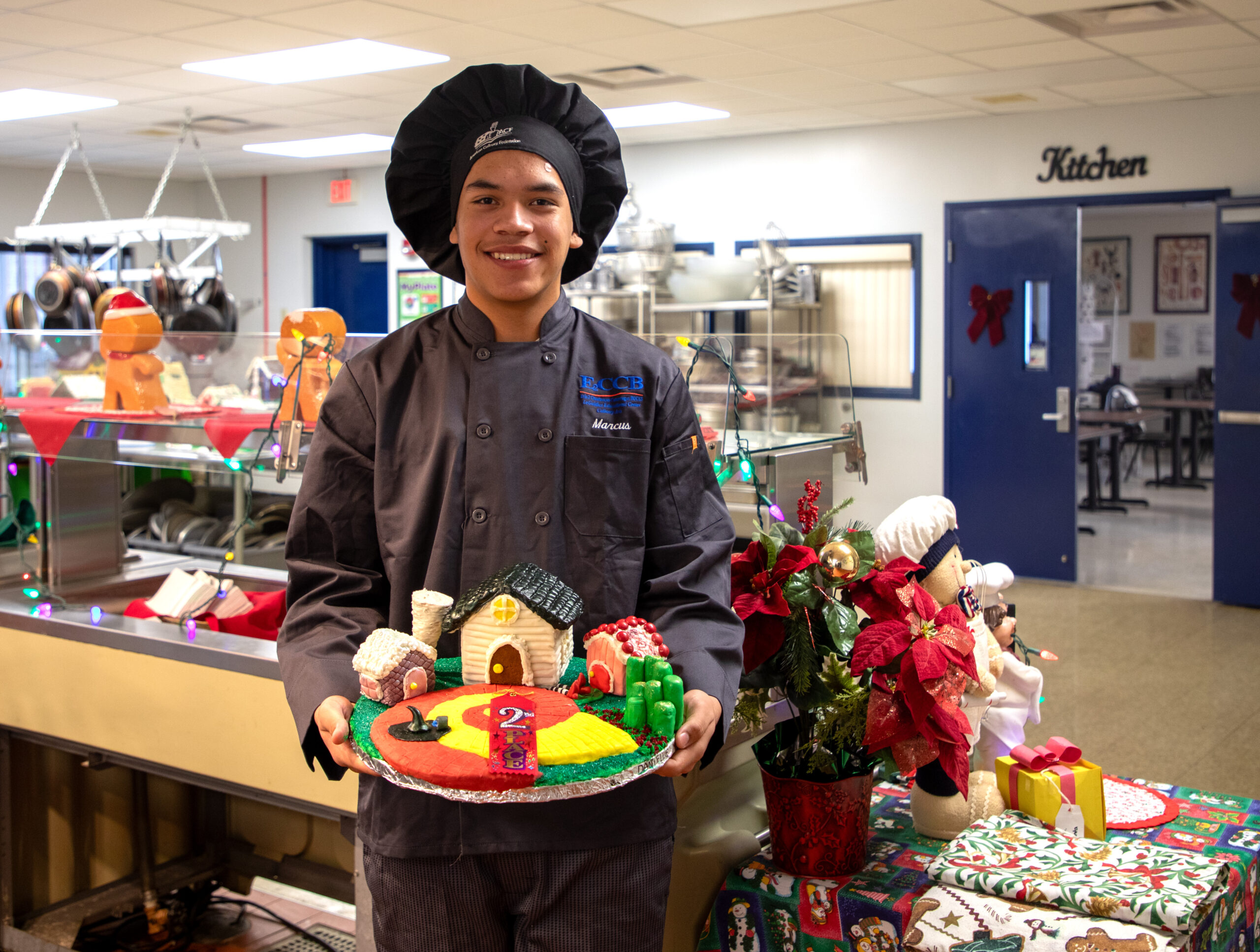 Chef Caccamise said he tries to teach the importance of patience, perseverance, and attention to detail to students before they begin making their gingerbread houses. In addition to judging by faculty and staff, the houses are also graded separately as a project on the use of materials, creativity, overall appearance, and “holiday spirit.”