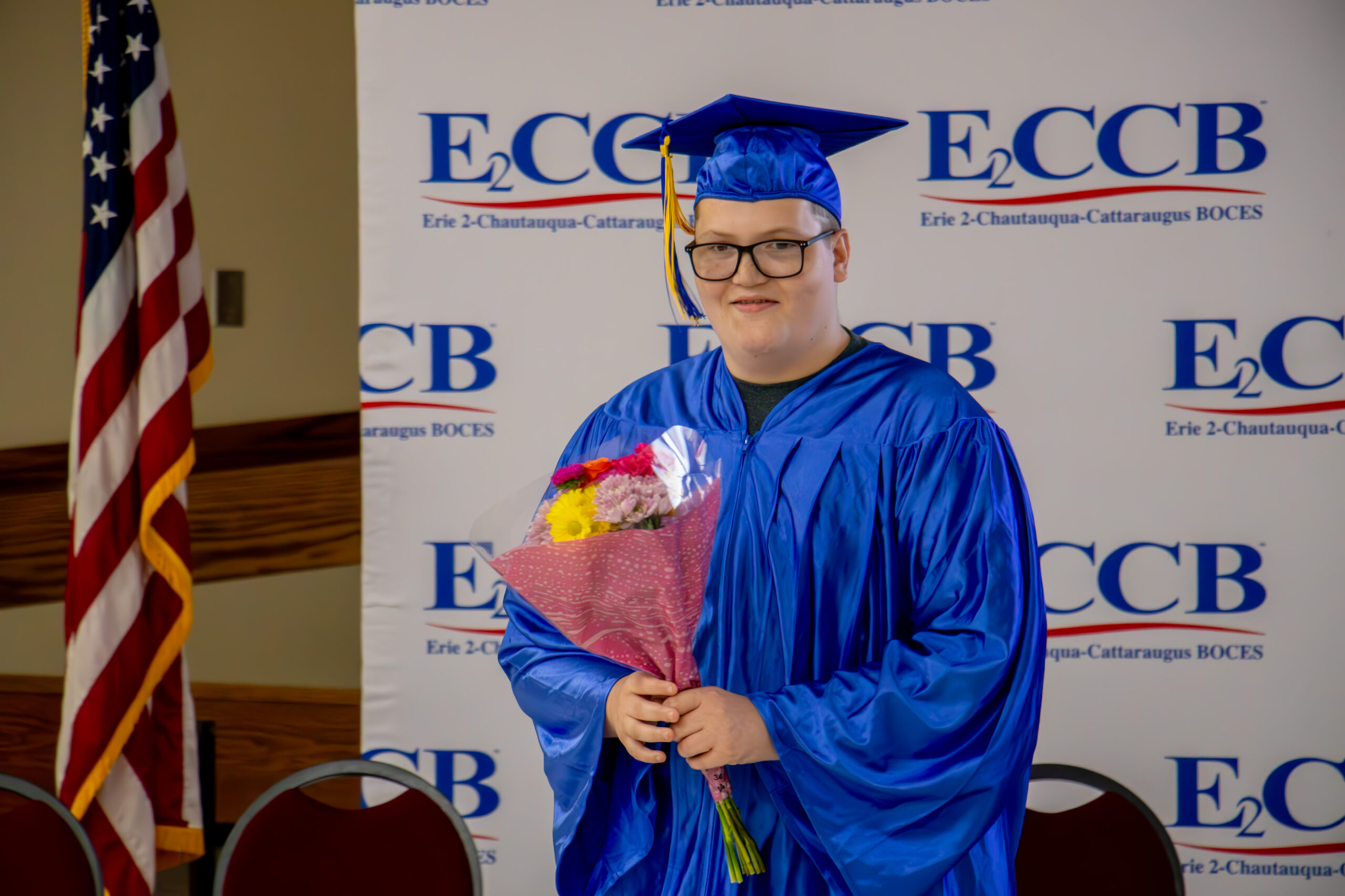 Each of the three graduates — Jamin, Patricia, and Aidan — received a Skills and Achievement Credential, recognizing the hard work and accomplishments that brought them to this day. A moving highlight of the ceremony was when each graduate presented flowers to their mothers. A nostalgic slideshow followed, showcasing photos from the students’ time at LoGuidice and capturing just how far they had come.