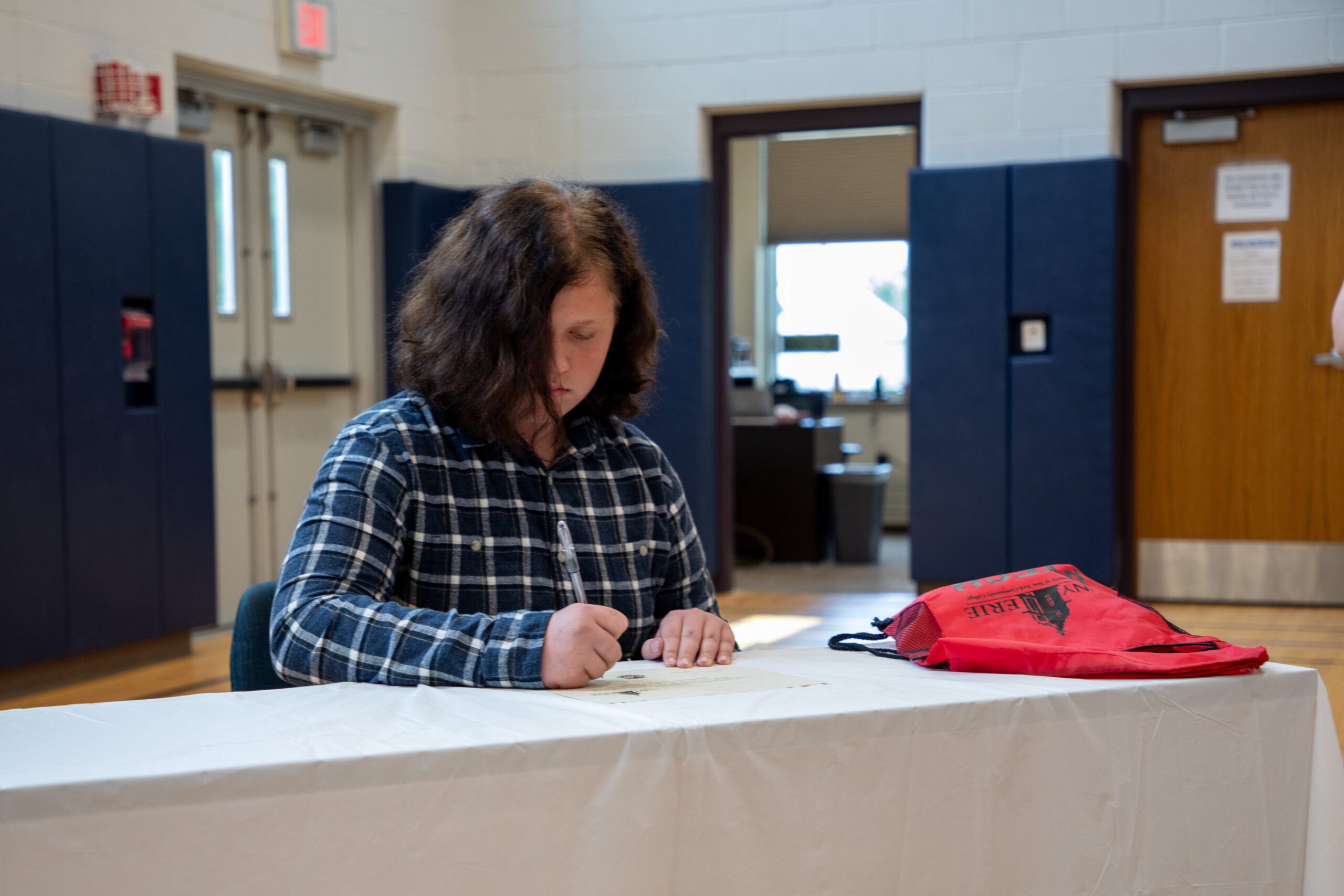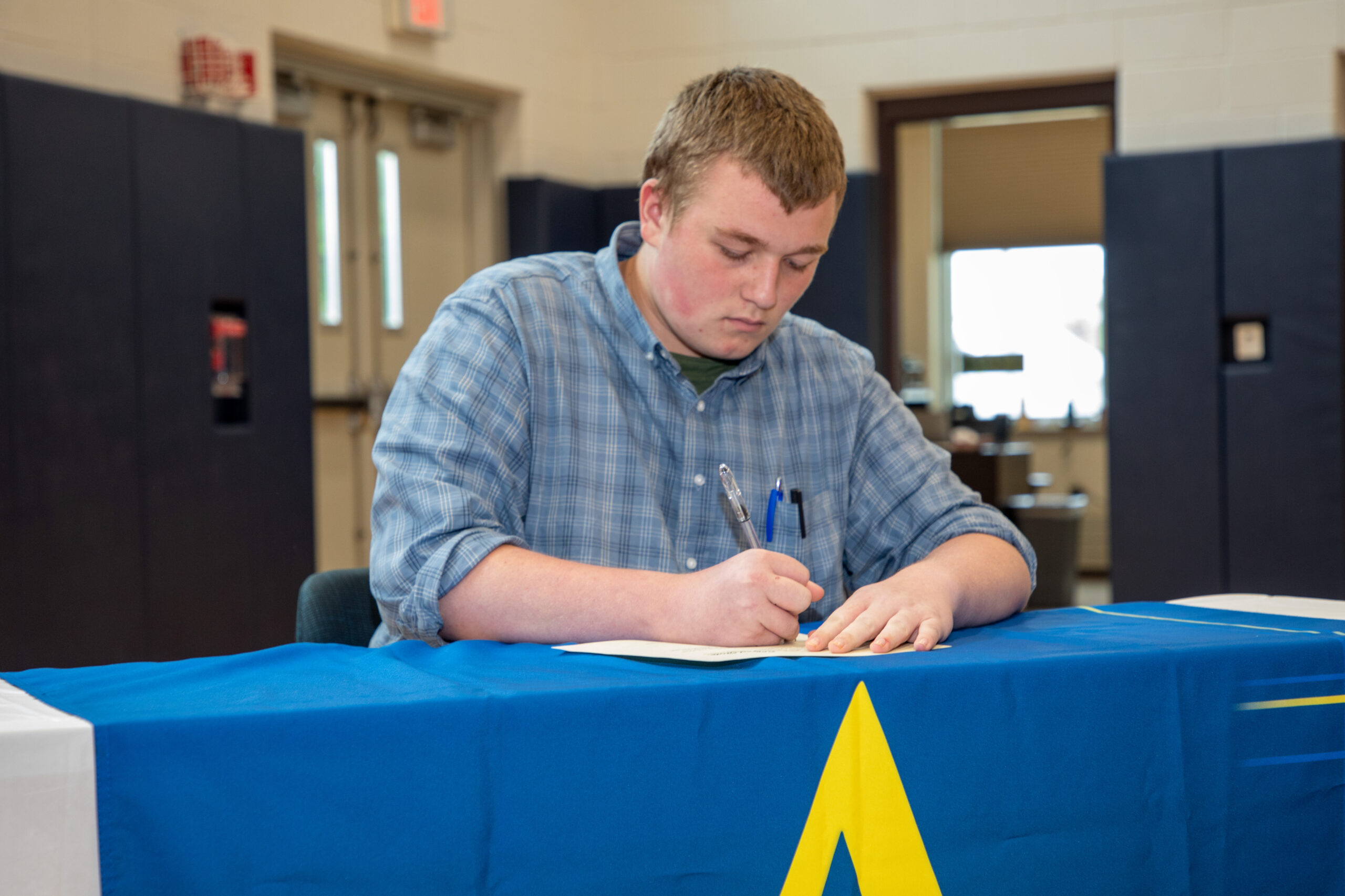 Eight students entering their second year at CAM P-TECH in Springville put pen to paper in choosing how they will further focus their academic studies and possibly future careers.