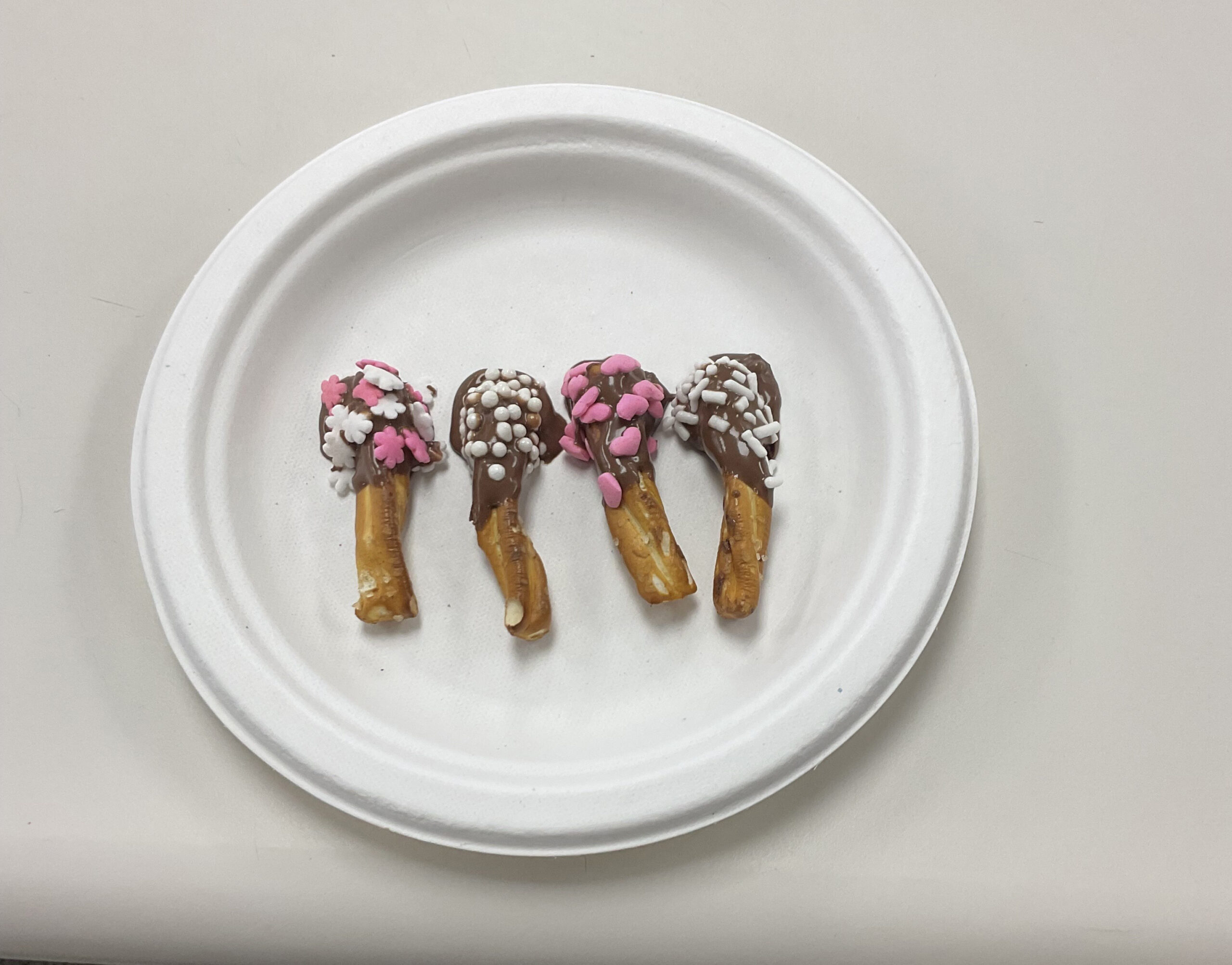 Using pretzel sticks, melted chocolate, and sprinkles, participants built edible models representing the three layers of the hair shaft. The pretzel stick served as the cuticle, melted chocolate symbolized the cortex, and sprinkles illustrated the medulla.