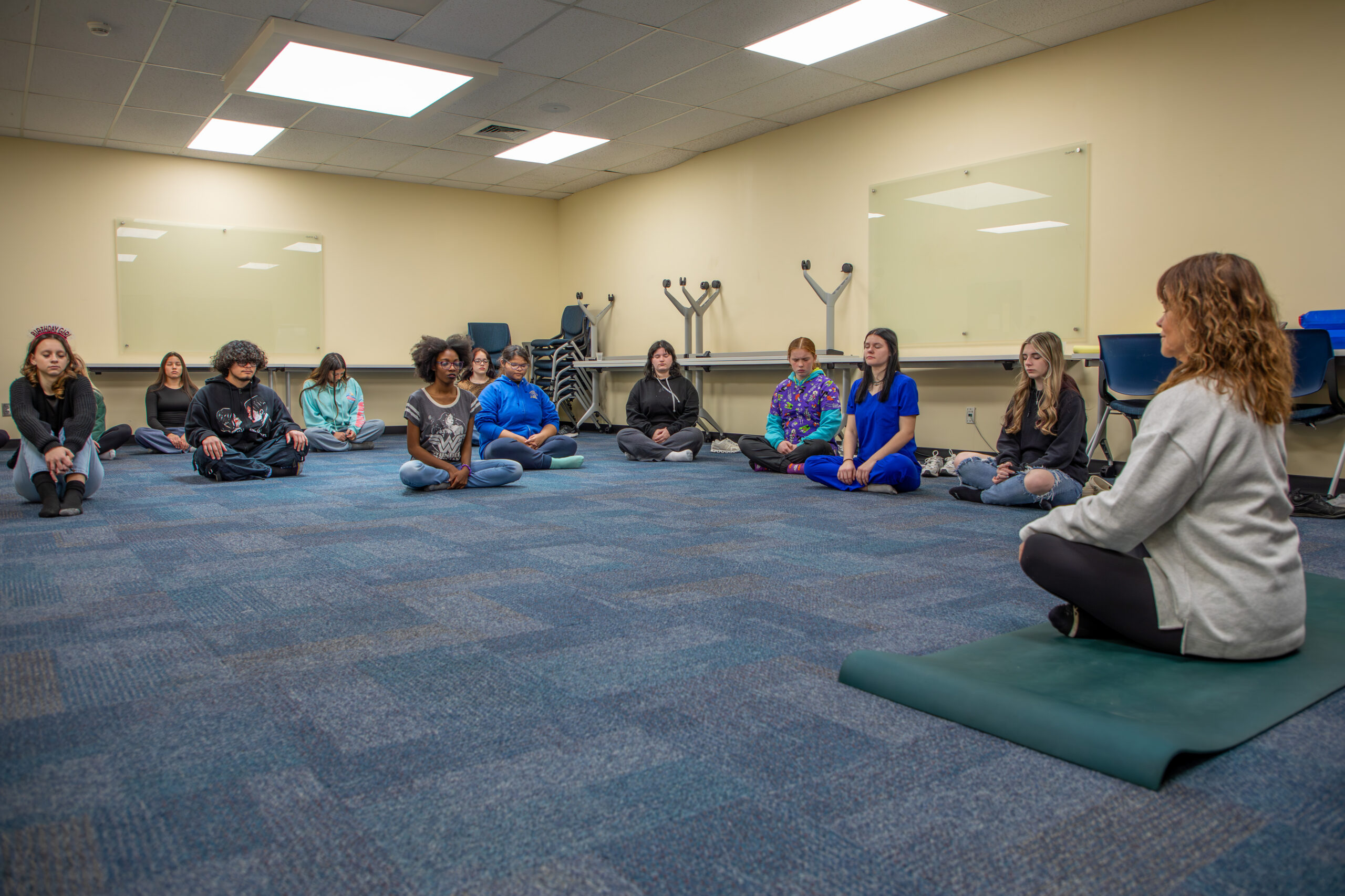 After completing their rotations, the CTE students gathered for a culminating reflection session in the large group room. Mrs. Lacki and Mr. Barmore shared inspirational messages, encouraging students to reflect on what wellness truly means and how intentional self-care can positively influence their daily lives and future careers.